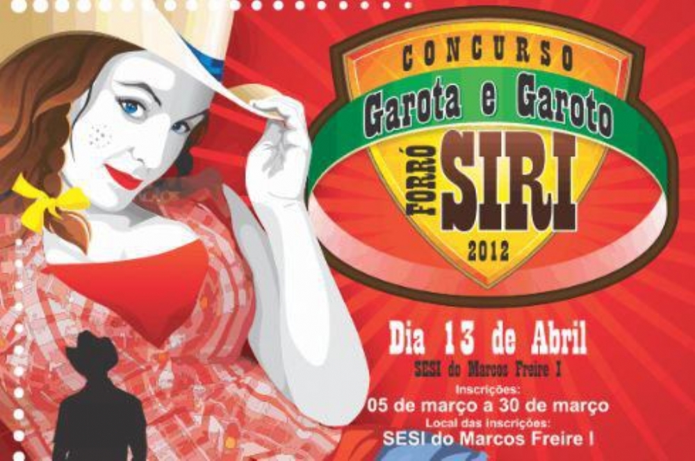 O mês de junho se aproxima e a ansiedade aumenta para curtir o melhor e maior São Pedro de Sergipe: o Forró Siri. Já nos preparativos para mais uma edição de sucesso, a Prefeitura de Nossa Senhora do Socorro inicia as inscrições do Concurso Garoto e Garota Forró Siri 2012 na próxima segunda, 5. O casal representará a beleza e alegria do grande arraial socorrense que, a cada ano, conquista mais e mais forrozeiros.