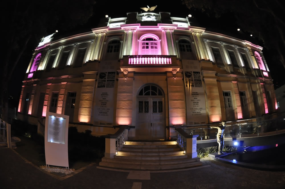 A fachada do Museu da Gente Sergipana está sendo iluminada este mês com luz cênica cor-de-rosa, em adesão à campanha Outubro Rosa, que é realizada em várias partes do mundo com o objetivo de conscientizar a população sobre a importância do diagnóstico precoce do câncer de mama.