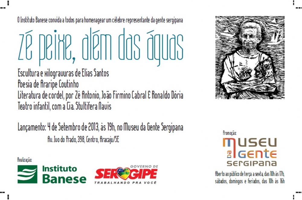 A homenagem será marcada também com a abertura de uma exposição com os estudos de Elias Santos produzidos para a modelagem da escultura e mais as xilogravuras de Elias Santos criadas para ilustrar os cordéis, que serão expostas juntamente com poemas de Araripe Coutinho sobre o homenageado. A mostra recebeu o nome desta extensa ação: “Zé Peixe, além das águas” e ficará aberta ao público no espaço expositivo do foyer do Museu da Gente Sergipana até o mês de outubro.