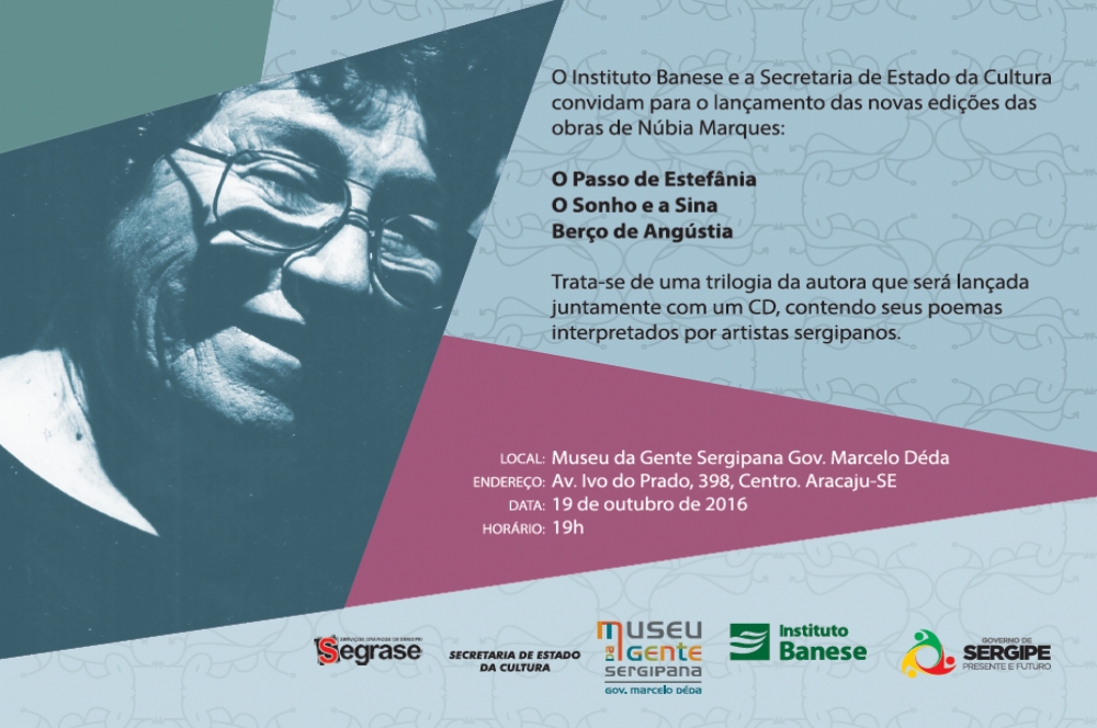 Na próxima quarta-feira, dia 19, às 19h, acontecerá no Museu da Gente Sergipana Gov. Marcelo Déda, o lançamento das novas edições das obras da escritora Núbia Marques. A trilogia composta por ‘O Passo de Estefânia’, ‘O Sonho e a Sina’ e ‘O Berço da Angústia’ foi reeditada pelo Instituto Banese e o Governo de Sergipe, através da Secretaria de Estado da Cultura, com o objetivo de propagar o legado artístico cultural de uma escritora sergipana que tanto contribuiu com questões sociais e existenciais.