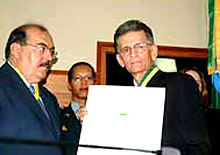 Ismael recebe homenagem das mãos do presidente da Casa, Antônio Passos/ Foto: Maria Odília