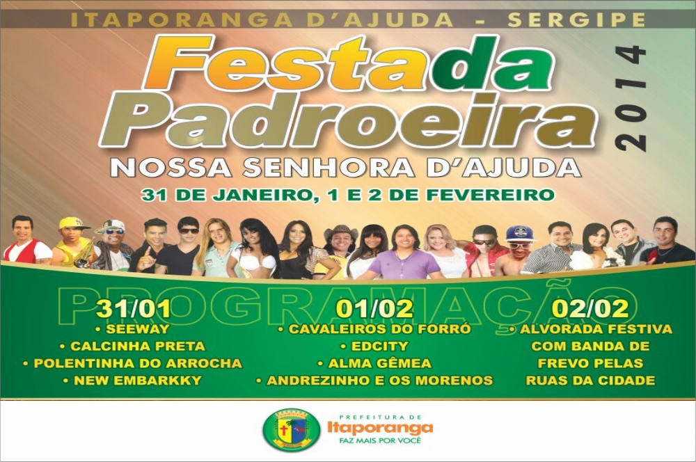 Além da programação religiosa, que é de responsabilidade da Paróquia Nossa Senhora D´Ajuda, a Prefeitura de Itaporanga, através da Secretaria de Cultura e Turismo, promoverá shows musicais com atrações locais e nacionais.