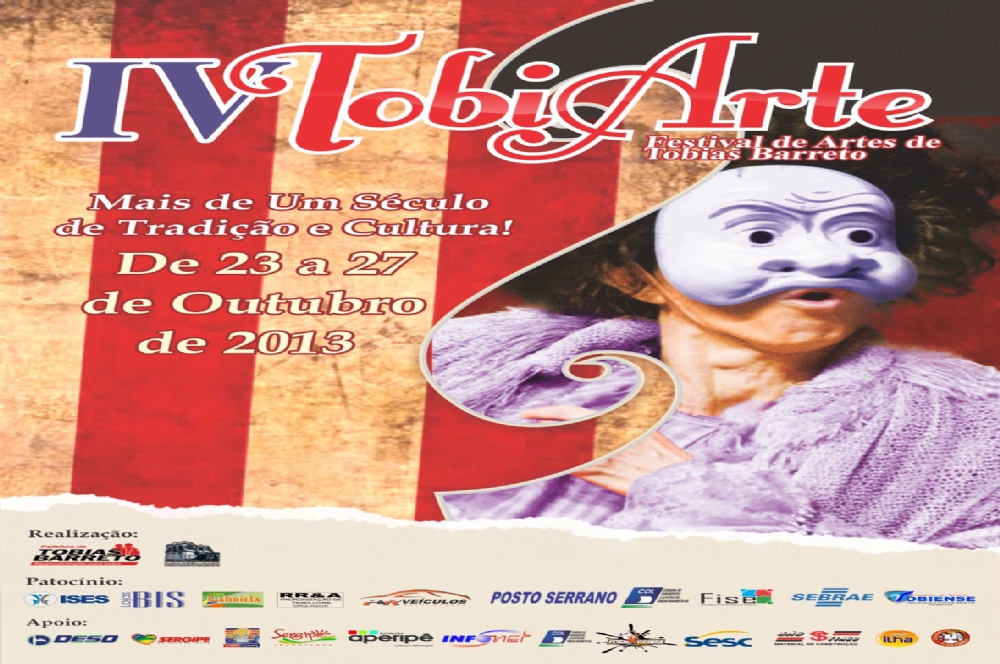 A quarta edição do Festival de Arte de Tobias Barreto recebe mais uma vez grupos artísticos de todo o Estado no final do mês de outubro. O TobiArte acontece de 23 a 27 na cidade a 120 km de Aracaju, no centro-sul de Sergipe. Ruas e praças do município recebem mais de 50 apresentações de dança, música, artes plásticas e, principalmente, teatro.