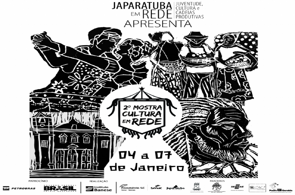A primeira semana de janeiro de 2016 será de muita cultura e arte no município de Japaratuba. O Projeto ‘Japaratuba em Rede: Juventude, Cultura e Cadeias Produtivas’ realizará, entre os dias 04, 05, 06 e 07 de janeiro dentro do Festival de Artes Arthur Bispo do Rosário, a 2ª Mostra Cultura em Rede. Exposições, sessões de cinema, minicurso e outras atividades trarão novidades para a programação do festival.