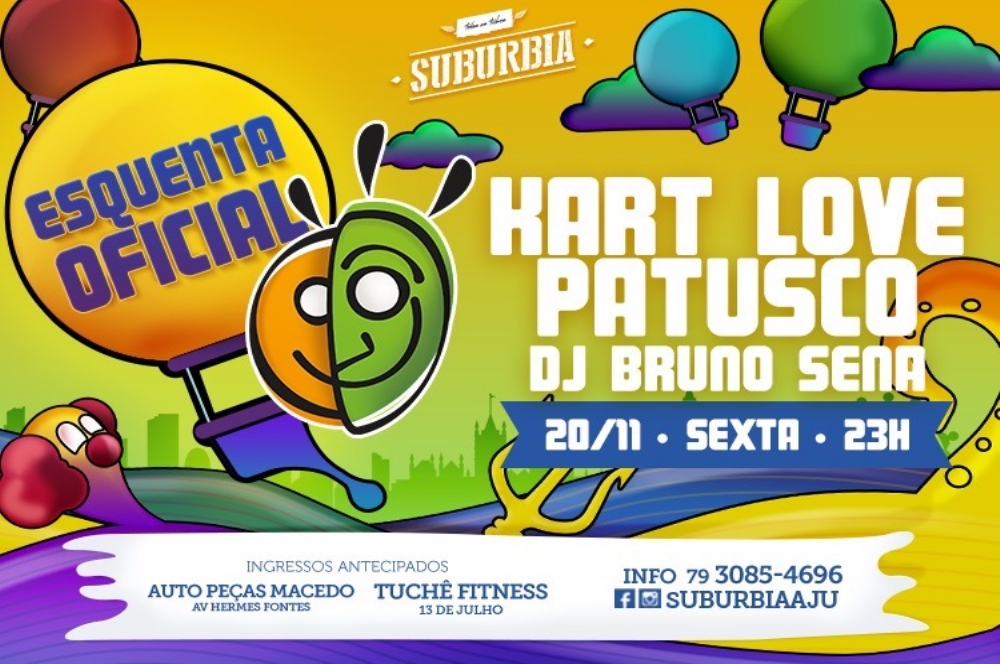 O Esquenta oficial da Odonto Fantasy vai ser no Suburbia para todo mundo começar a entrar no clima do Mundo da Fantasia. Kart Love, Patusco e o Dj Bruno Sena aquecem a galera na sexta-feira, 20, a partir das 23 horas.