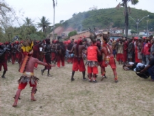 Ao meio-dia foi servida uma feijoada na casa do rei dos lambe-sujos, José Ronaldo de Menezes, mais conhecido como Zé Rolinha. À tarde, foi realizada a encenação teatral ao ar livre. Toda a teatralidade é acompanhada por toques de ganzás, pandeiros, cuícas, tambores e reco-reco, em um ritmo já popularmente conhecido como “Samba Nêgo”. A brincadeira conta também a história dos escravos africanos e como suas fugas e artifícios confundiam os capitães-do-mato. O próprio termo “Lambe Sujo” vem da camuflagem que os escravos aplicavam sobre o corpo para facilitar sua fuga. A luta entre estes e os índios, devido à instalação dos quilombos em territórios dos “caboclinhos”, e o conflito são encenados durante as festividades. No Lambe-Sujo existem as figuras do rei, dos feitores, da mãe Suzana, da princesa e dos negros. Os participantes pintam a pele com uma mistura de pó de carvão e óleo e trajam calção e gorro vermelhos e andam de pés descalços e com uma arma, uma foice de madeira. Já nos Caboclinhos, as figuras são o rei e a rainha, o cacique, o pajé e os caboclinhos. Eles usam traje convencional de índio, saiote e cocar de penas. Para o secretário municipal de Cultura, Irineu Fontes, a tradicional festa popular dos lambe-sujos e Caboclinhos, é, sem dúvida, uma das atrações mais esperadas em Laranjeiras todos os anos. “A população curte bastante a festa e os participantes e o poder público se empenham para garantir a melhor apresentação da cultura popular. Hoje, essa festa secular já é reconhecida pelo Ministério da Cultura e, com isso, pretendemos dar mais visibilidade em todo o Brasil. O primeiro passo já foi dado”, declarou Fontes. Fonte: Empauta Comunicação