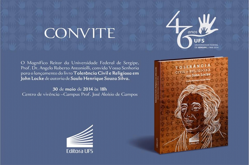No dia 30 desse mês será lançado em Aracaju o lançamento da obra Tolerância Civil e Religiosa em John Locke. Trata-se da primeira publicação sobre o tema da tolerância civil e religiosa a partir da obra do filósofo inglês John Locke no Brasil. Sobre isso, cabe ressaltar que Locke foi um dos primeiros pensadores a pôr o tema da tolerância na ordem do dia das discussões filosóficas.
