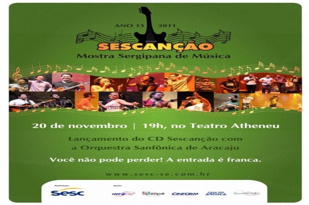 Dia 20 de novembro, às 19h no Teatro Atheneu, o Serviço Social do Comércio (SESC) Sergipe convida a todos para o lançamento do CD Sescanção 2011, com participação de músicos da banda base Sescanção com convidados e show de encerramento com a Orquestra Sanfônica de Aracaju.