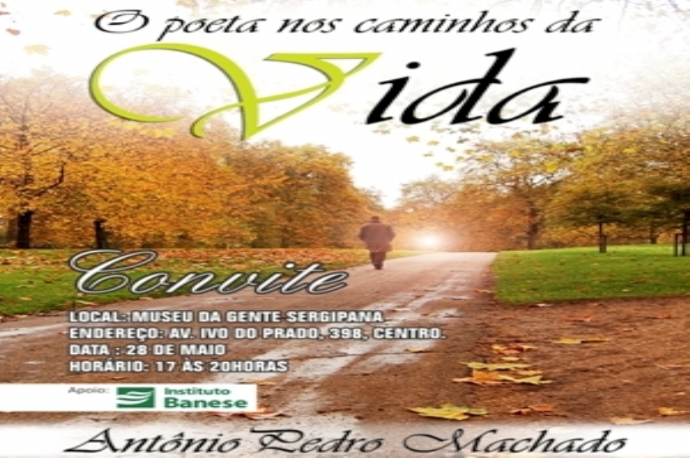 Na próxima quarta-feira, dia 28, a partir das 17hs, o poeta Antônio Pedro Machado lançará o livro “O Poeta nos caminhos da vida”. Com o apoio do Instituto Banese, o lançamento trará o primeiro livro do autor, que além de poeta é bacharel em Direito, Comunicação Social e Administração.