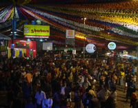 Forró Caju. O forró é pesado e os casais aproveitam o ritmo para ralar o bucho. Só está parado quem não achou seu par ainda. Mesmo assim tem mulher sozinha que convida seu par no embalo da dança. No Forró Caju 2005, não existe desculpa para não seguir os passos do forró. É só olhar para os lados, para trás ou dar uma voltinha porque tem sempre alguém que não vai resistir ao som de Lourinho do Acordeon.