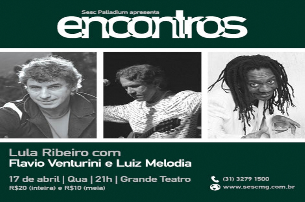 O músico sergipano Lula Ribeiro completa em 2013, 30 anos de carreira, e para celebrar em grande estilo convida dois grandes amigos para um encontro único, o carioca Luiz Melodia e o mineiro Flávio Venturini. O show comemorativo acontecerá em 17 de abril, às 21h, no Grande Teatro do Sesc Palladium. O repertório conta com canções inéditas e da trajetória de Lula, além de sucessos dos dois amigos que dividem o palco com ele.