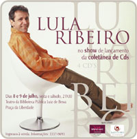Filho de Sergipe, Lula comemora a distribuição de seu mais recente trabalho, uma coletânea com quatro CDs, reunindo álbuns de sucesso de sua autoria. ‘Janeiros’ (1993), ‘O Sono de Dolores’ (1996), ‘Muito Prazer’ (1999) e ‘Algum Alguém’ (2003) são os discos agrupados pelo pacote, que carrega o selo da Sony Music. No palco, o respeitável público poderá conferir uma verdadeira miscelânea musical, formada por canções de cada um dos discos. Para o artista, a mistura de voz e acordes instrumentados é mais que mero espetáculo. Consiste numa emocionante retrospectiva de sua carreira, que tem a promessa, inclusive, de se tornar um DVD, com gravação já estimada para agosto, em terras cariocas. A apresentação deste sábado está marcada para começar às 21h30. Além de ontem e hoje, o músico e seu violão também fazem performance amanhã, no mesmo local e horário.