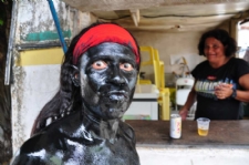 A festa em Laranjeiras é uma representação da luta do negro escravo pela sua liberdade e a participação do índio catequizado na “caça” dos fugitivos em busca dos quilombos. As ruas coloniais e o patrimônio cultural material típico de um barroco português são o pano de fundo do cenário. Os atores e atrizes principais e coadjuvantes são a população local, filhos de Laranjeiras, residentes ou apreciadores apaixonados pela tradição que ocorre sempre no segundo domingo do mês de outubro desde o final do século XIX. Lambe-sujo fotografado pelo profissional (Foto: Márcio Garcez)