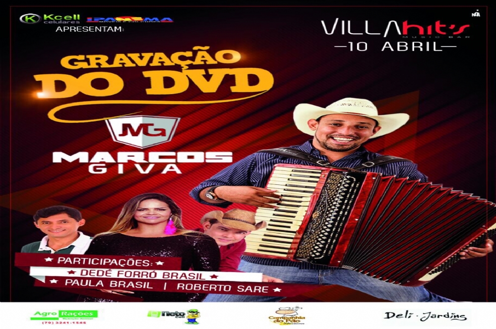 Com as participações de Dedé Forro Brasil, Paula Brasil e Roberto Sare a gravação do DVD começa às 22 horas e a bilheteria do Villa Hits abre às 20 horas com ingressos ao preço de R$ 30. O Villa Hits Music Bar fica na Avenida Beira Mar, nº 956. Para garantir a entrada antecipada o contato é o (79) 9944-5241.