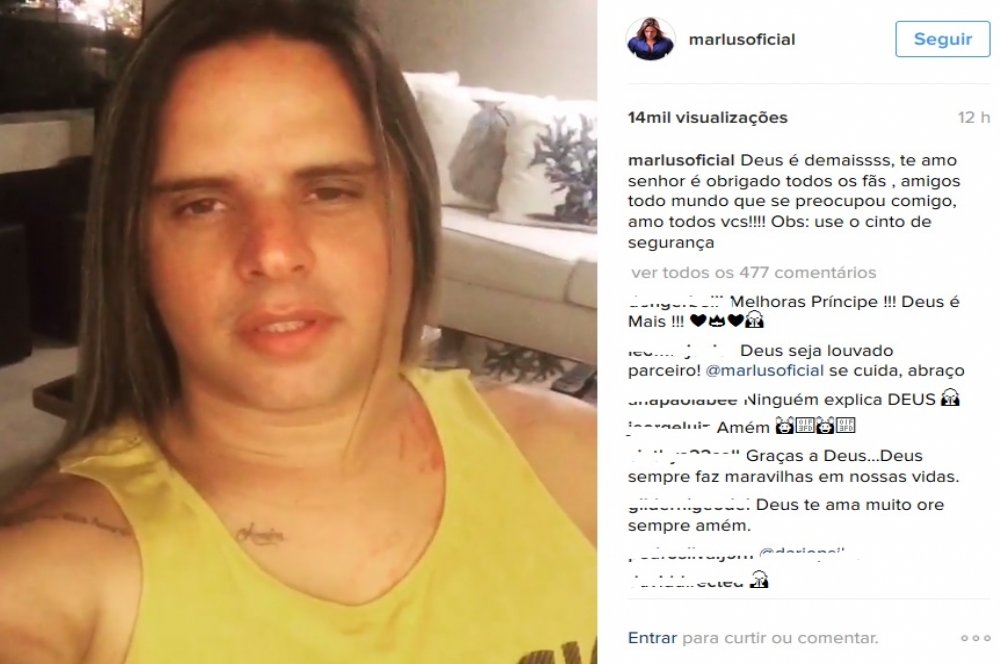 Neste final de semana, Marlus Viana, ex-vocalista da banda Calcinha Preta, e que segue em carreira solo, sofreu um acidente quando retornava de um show. O artista, conhecido entre os fãs como o príncipe da balada, gravou um vídeo em que conta sobre o momento do acidente registrado na BR 101 em Sergipe.