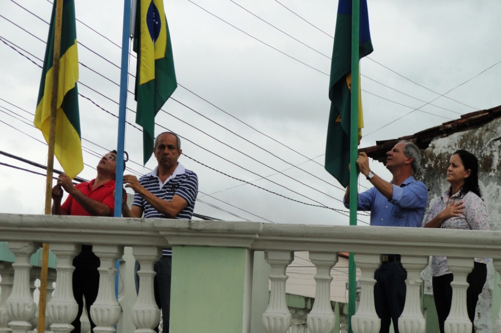 | Momento em que as bandeiras eram hasteadas (Foto: T. Dantas) |