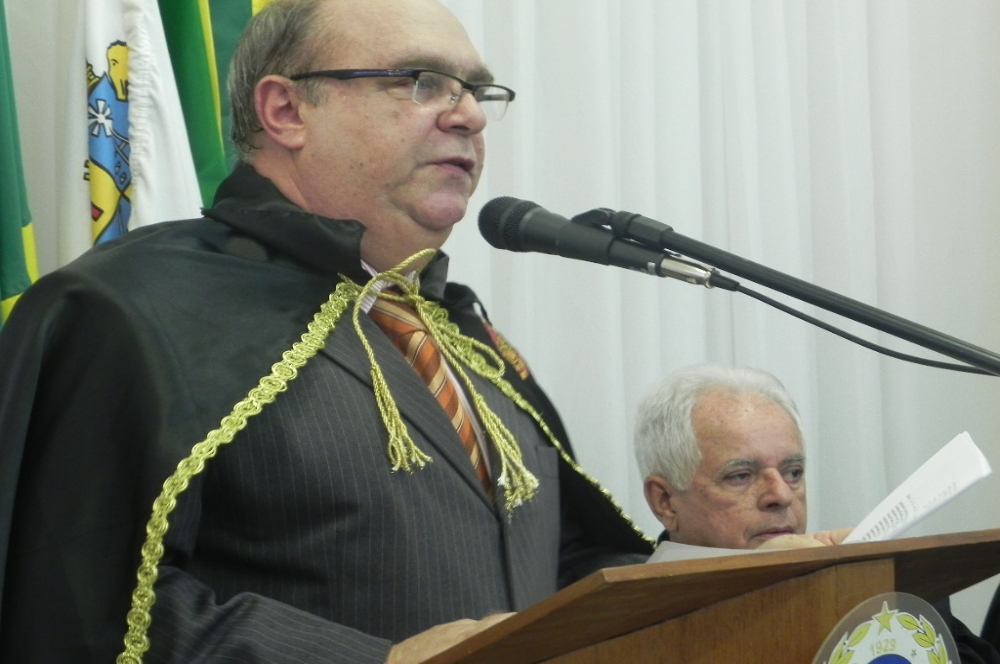 | Médico Lúcio Prado discursando na cerimônia de posse (Foto: Helena Sader) |