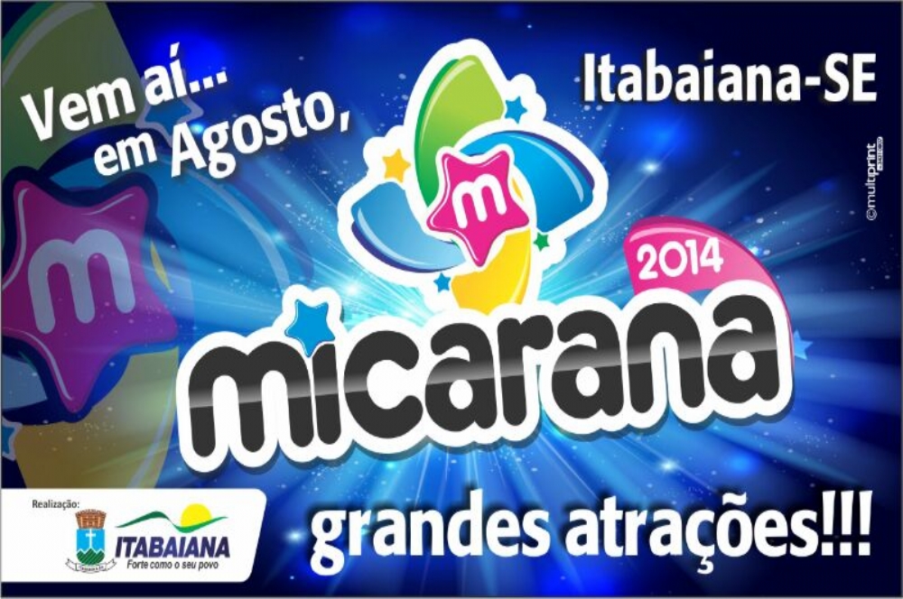 Visando garantir um fluxo cada vez maior de turistas para a cidade, a prefeitura de Itabaiana, dentro do seu planejamento de eventos, antecipa a grande notícia para todos os foliões: ainda em abril acontece a festa de lançamento da Micarana 2014, quando serão divulgadas oficialmente as atrações que farão o maior carnaval fora de época de Sergipe e que será realizada entr4e os dias 27 e 31 de agosto de 2014.