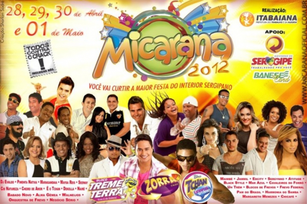 A Micarana, um dos maiores carnavais fora de época concretizado no interior de Sergipe, e que é realizada em Itabaiana desde o ano de 1994, nesta edição de 2012 vai acontecer entre os dias 28 de abril e 01 de maio, conforme pode ser conferido através da programação abaixo.