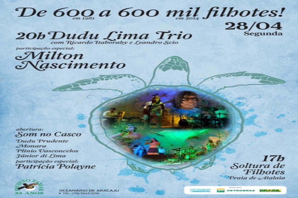 Nesta segunda, para comemorar a conquista o projeto realiza a partir das 17h – Solturas de filhotes da ninhada de 600 mil, na praia da Atalaia em frente ao Oceanário de Aracaju com a presença de Milton Nascimento. Já às 20h – Show com os mineiros Dudu Lima Trio com uma super participação de Milton Nascimento, no espaço Cultural do Oceanário de Aracaju. A abertura será com a Banda Som no Casco ( músicos sergipanos), tendo participação especial de Patrícia Polayne;