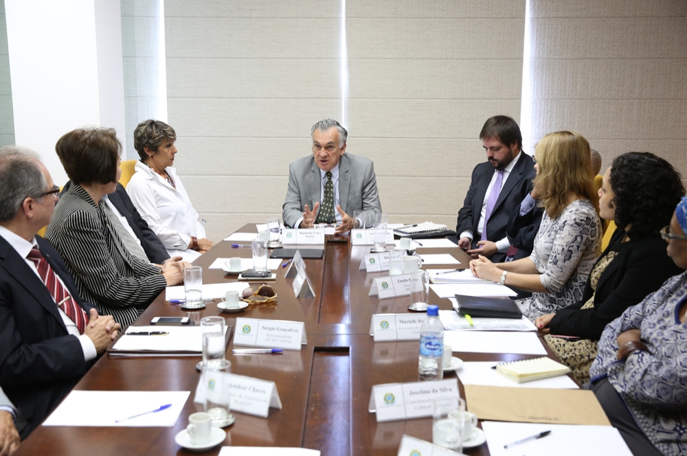 | Juca Ferreira recebeu representantes dos moradores do Lago Sul (DF), do Ibram, da Fundação Palmares, do IAB-DF e Secretaria do Patrimônio da União (Foto: Janine de Moraes) |