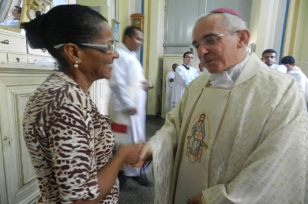 Renilda dos Santos abraça e agradece pela vida do Bispo