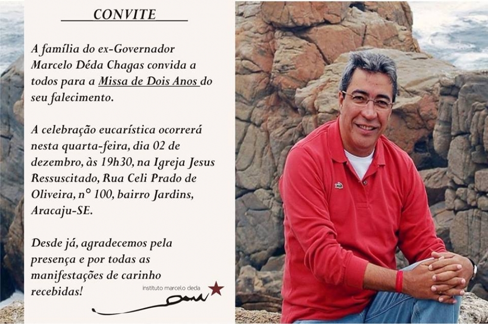 Nos dois anos da morte do ex-governador de Sergipe, Marcelo Déda Chagas, nesta quarta-feira, 2, ocorrerá uma missa às 19h30 na Igreja Jesus Ressuscitado, em Aracaju.