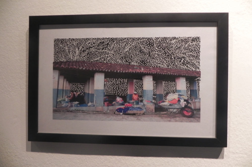 Para inserir a xilogravura nas imagens foi um processo difícil que durou um mês e meio. “Primeiro recortei a imagem no photoshop, depois decalquei em papel manteiga para usar como molde na madeira e finalmente imprimi na imagem. Só a parte da impressão demorou uma semana”, explicou Gabi Etinger.