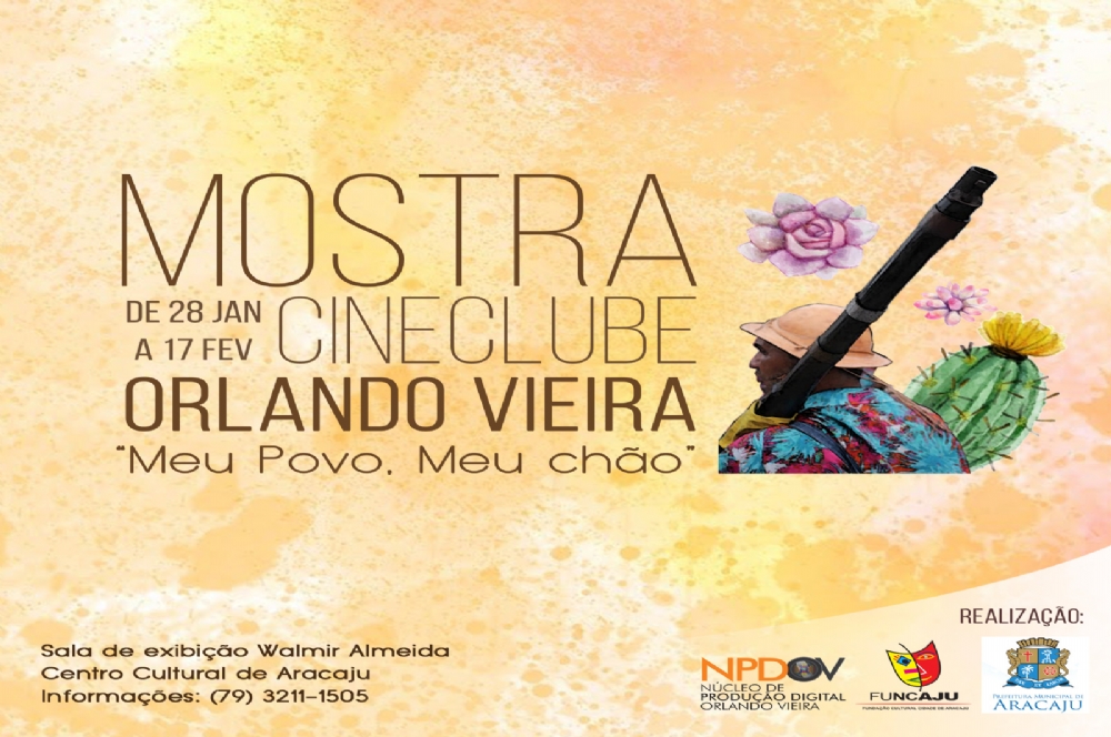 A Mostra Cineclube Orlando Vieira "Meu povo, meu chão" continua em exibição no Núcleo de Produção Digital Orlando Vieira (NPDOV), situado no Centro Cultural de Aracaju. Iniciada no último sábado, 28, o evento segue até o dia 17 de fevereiro com programação de terça à sexta. A Mostra segue uma política de exibição formadora de público e dedicada ao cinema não comercial apresentando uma programação que valoriza, principalmente, a produção independente sergipana. Isso possibilita que a população tenha acesso a filmes que, normalmente, não são exibidos nos grandes cinemas de Aracaju. Toda a programação da Mostra é aberta e inteiramente gratuita.