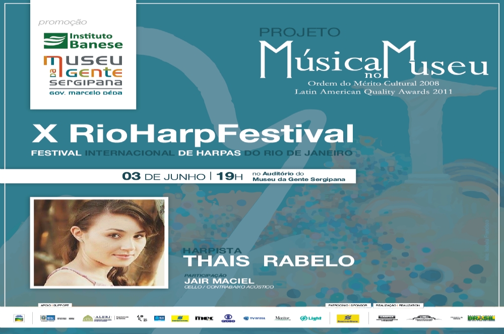 No próximo dia 03 de junho, às 19h, o projeto 'Música no Museu', considerado a maior série de música clássica do Brasil na atualidade, estará de volta à Aracaju, novamente no Museu da Gente Sergipana Gov. Marcelo Déda. Com a promoção do Instituto Banese e do Museu da Gente Sergipana, o projeto trará o RioHarpFestival, que é uma das maiores séries de concertos de harpa no Brasil. O concerto no Museu da Gente será o único realizado no Nordeste e contará com a harpista sergipana Thais Rabelo.
