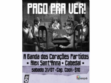 Neste sábado, 31, as bandas ‘Dos Corações Partidos’, ‘Cabedal’ e o cantor Alex Sant’Anna sobem ao palco do Capitão Cook na primeira edição do projeto ‘Pago Pra Ver’, uma promoção do selo ‘Disco de Barro’. A ideia, segundo Alex Sant’Anna, é que o projeto ocorra mensalmente.