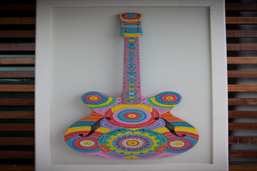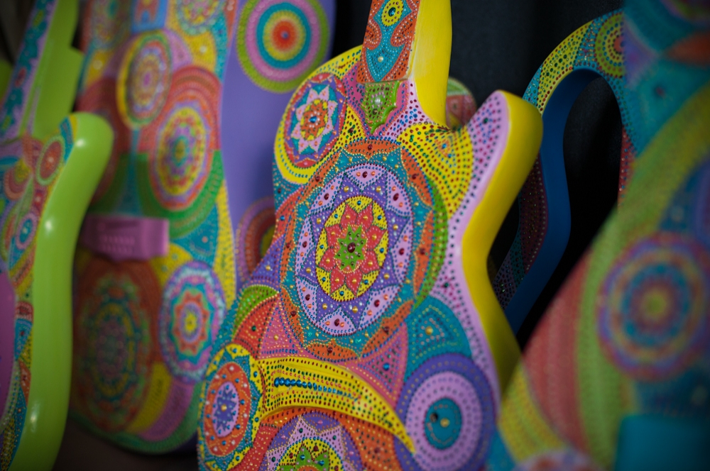 Mandalas orientais são inspiração para cobrir superfícies de instrumentos musicais |