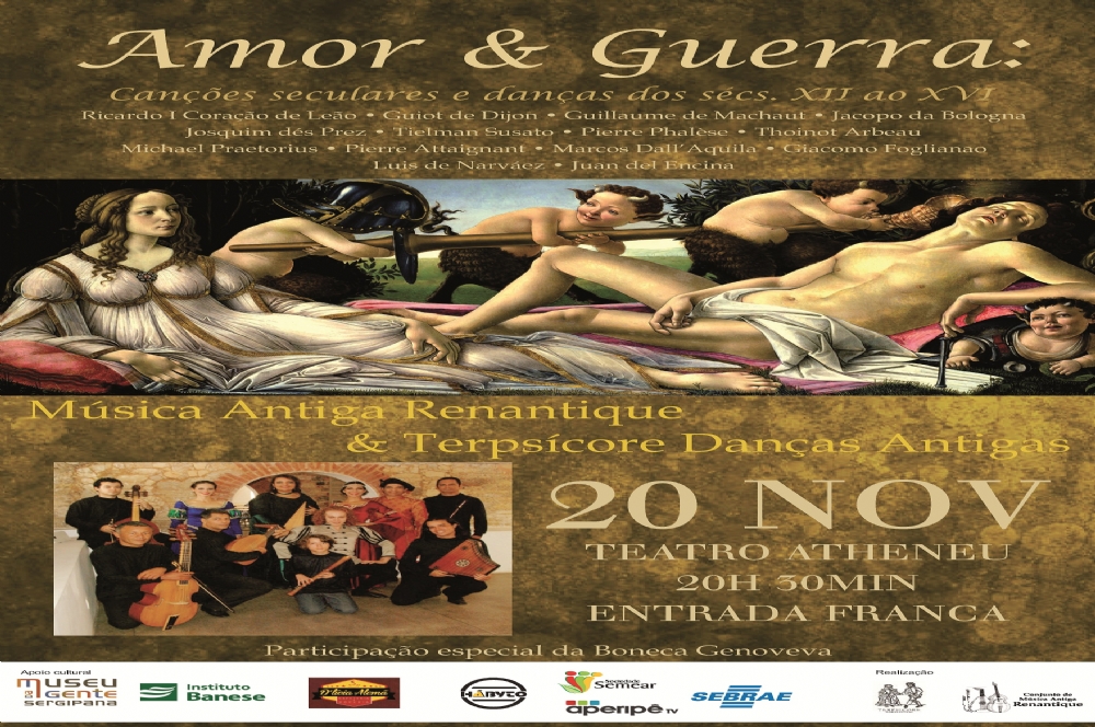 Sob o título Amor & Guerra: canções e danças do século XII ao XVI, serão apresentadas canções produzidas durantes as Cruzadas e outras batalhas, peças espontâneas que demonstram todo o entusiasmo do povo pelas guerras religiosas e não-religiosas. E, para acalmar os corações dos cavaleiros, só o amor espalhado pelos troubadors e trouvères, os poetas-músicos da Idade Média, que, além de cantarem o amor, também comentavam as notícias do seu tempo. Afinal, não havia outra forma de difundir as últimas novidades, tendo em vista que a imprensa apenas surgiria no século XV.