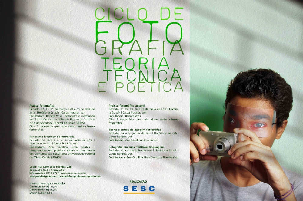 O Sesc abriu inscrições para o Ciclo de Fotografia: Teoria, Técnica e Poética, que tem como base teórica o trabalho do fotógrafo Henri Cartier-Bresson, no qual diz que fotografar é alinhar a mente, o olho e o coração. Dividido em cinco módulos independentes, o curso acontece nas instalações do SESC entre os meses de março a junho deste ano e objetiva ampliar o raio de visão e ação dos fotógrafos amadores ou profissionais, sob o auxílio e orientação da fotógrafa Renata Voss e da pesquisadora de poéticas fotográficas Ana Carolina.