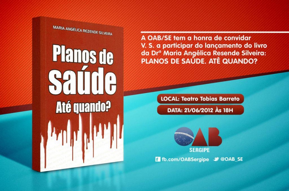 Acontece na próxima quinta-feira, 21, às 18h, no auditório do Teatro Tobias Barreto, o lançamento do livro “Planos de Saúde – Até quando?” da Coordenadora de Saúde Pública da Comissão de Direitos Humanos da Ordem dos Advogados do Brasil – Seccional Sergipe, Maria Angélica Rezende Silveira. Durante o evento, será feita uma palestra sobre a temática contida na publicação de modo a esclarecer dúvidas e apresentar as aplicações jurídicas concernentes.