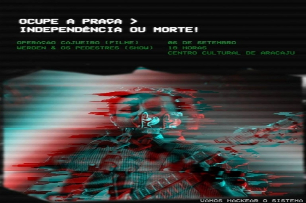 Toda primeira e última quarta-feira de cada mês é dia de ‘Ocupe a Praça’. E nesta quarta, 6, o evento traz como tema “Independência ou Morte”. Iniciando às 19h, o Ocupe terá a exibição do filme Operação Cajueiro, do diretor sergipano Fábio Rogério e show com Werden e os Pedestres, além de participação especial de Alex Sant'anna e Luno Torres, baixista e compositor da Plástico Lunar.