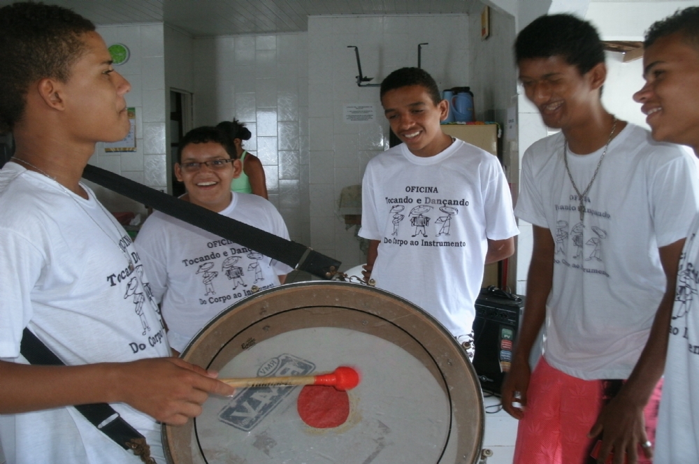 A oficina, intitulada ‘Tocando e dançando: do corpo ao instrumento’, realizada entre os meses de maio e agosto, atraiu alguns jovens da comunidade com idades entre 16 e 29 anos, que puderam aprender a tocar instrumentos e a trabalhar os principais ritmos que compõem o forró, como o xote e o baião, com os músicos Pedrinho e Vinícius Mendonça. “Na oficina os participantes puderam utilizar instrumentos como triângulo, agogô, zabumba, entre outros”, explica a proponente do projeto, Kelly Pereira.