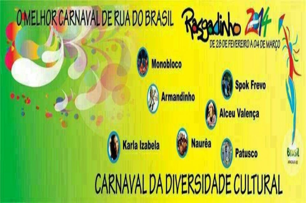 A organização do tradicional Carnaval do Rasgadinho divulgou os nomes das atrações nacionais que participarão da festa. Armandinho Dodô e Osmar, Spok Frevo, Patusco, Zeca Balero e Monobloco são os nomes já confirmados. As atrações locais ainda estão sendo definidas.