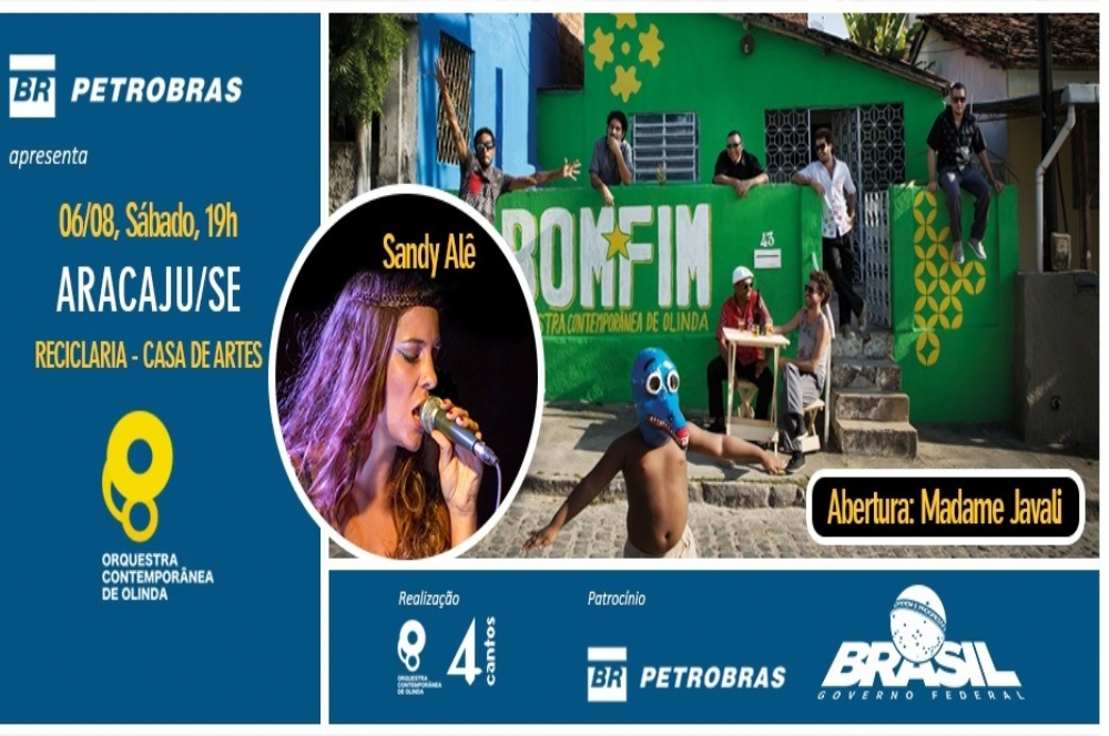 O Projeto Zons, em parceria com a produtora baiana Ruffo, traz para Aracaju, no próximo sábado 06 de agosto, Orquestra Contemporânea de Olinda (OCO) e Sandyalê. A festa, que acontece na Reciclaria – Casa de Artes, a partir das 19 horas, será aberta pelo show inédito da banda sergipana Madame Javali.