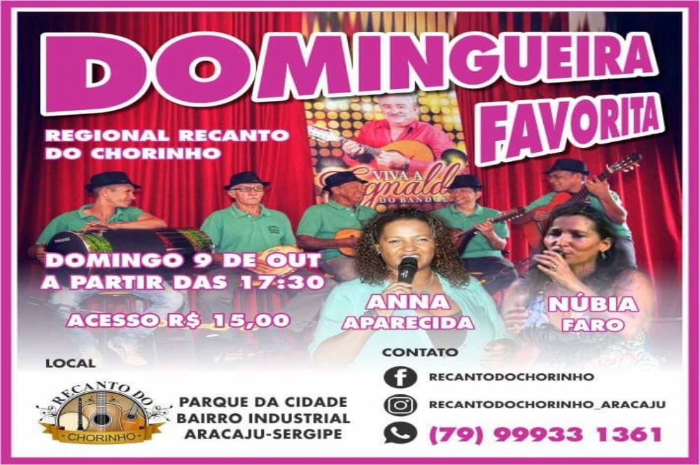 Dia 09 de Outubro (Domingo), o Bar e Restaurante Recanto do Chorinho celebrarar mais uma edição da Domingueira Favorita e dessa vez teremos Shows Especial em alusão ao Outubro Rosa.