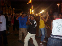 Enquanto os foliões esperam a passagem do bloco Uau com Babado Novo, o palco da Ilha Fm é o point. A galera está balançando o esqueleto de todas as formas, mas alguns chamam a atenção por Um desses grupos é formado por Wallace e seus amigos, moradores do bairro Santos Dumont. “Quando vamos a shows de pagode sempre dançamos assim, nós gostamos do ritmo e copiamos as danças dos shows”, disse.