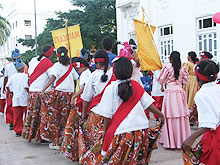 O gosto de Rosenilde pelas brincadeiras do maracatu também contagiou sua prima Ana Carina Almeida Santos, de 6 anos, que estava presente na apresentação de hoje. Rosenilde diz que, além dela, outras primas e irmãs também estão dançando.