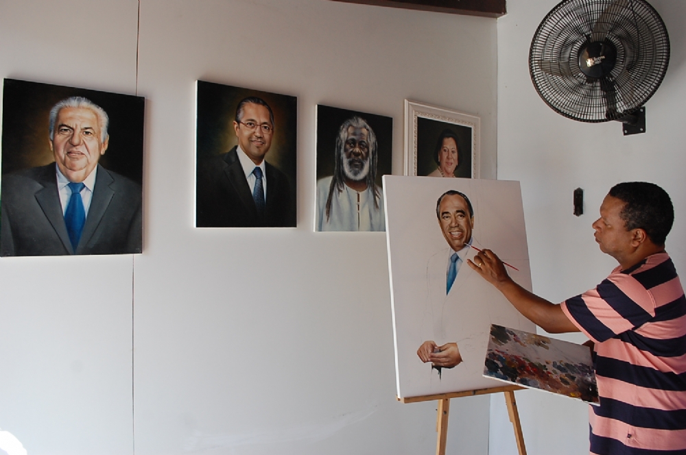 | Charles Henri em seu ateliê pintando o retrato do prefeito de Aracaju (Fotos: Portal Infonet) |