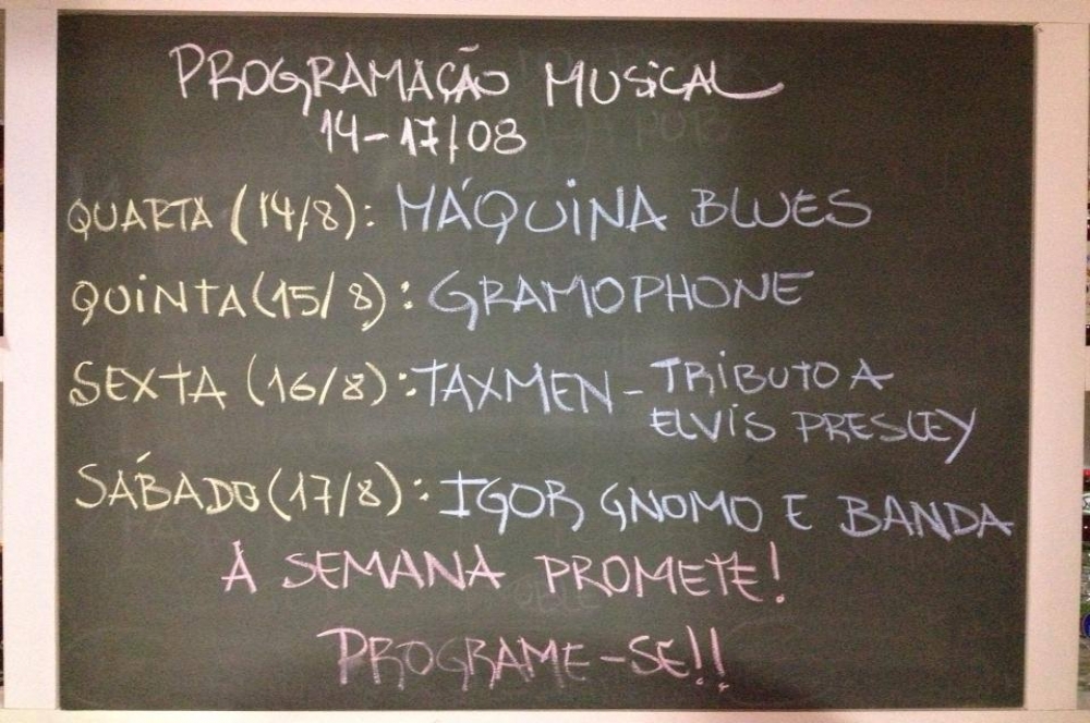 A programação desta semana da Oakhill Irish Pub está pra lá de recheada. Nesta quarta-feira, 14, Máquina Blues comanda a festa, Na quinta-feira, 15, Gramophone é atração. Já na sexta-feira, 16 e no sábado, 17, o agito fica por conta de Tax Men com Tributo a Elvis Presley e Igor Gnomo e banda, respectivamente.