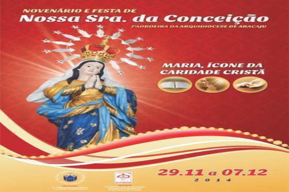 A Arquidiocese de Aracaju divulgou a programação do Novenário e festa de Nossa Senhora da Conceição que acontece deste sábado,29, até 7 de dezembro. O evento é aberto ao público. No dia 8 de dezembro acontece a Festa de Padroeiros a partir das 5h. O local é na Catedral Metropolitana.