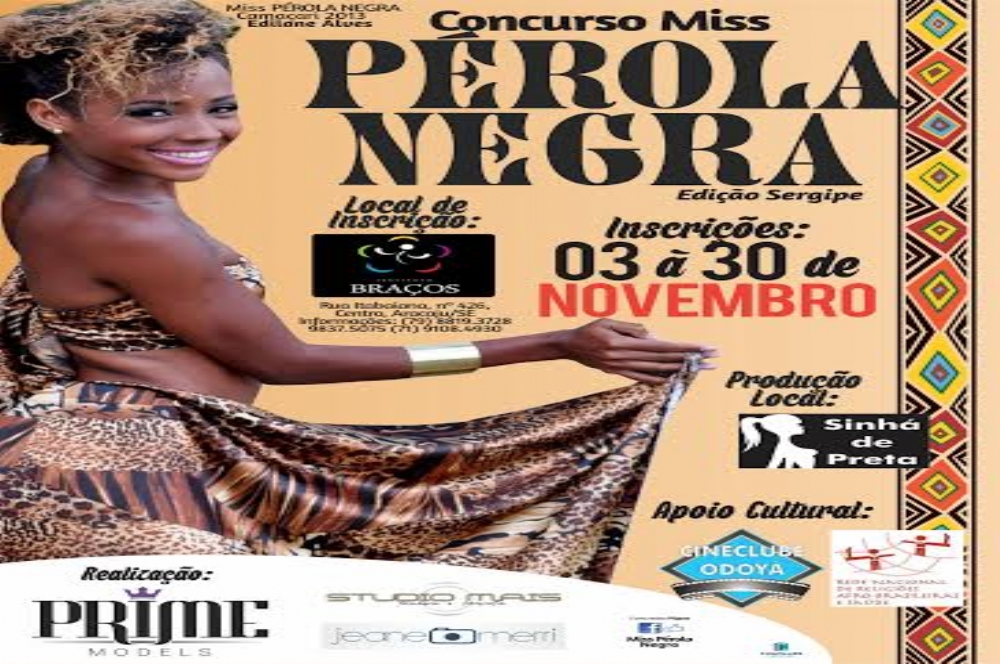 As inscrições do ‘Concurso Miss Pérola Negra Edição Sergipe’, já se encontram abertas no Instituto Braços, localizado na Rua Itabaiana, 426, Centro de Aracaju – SE (em frente ao estacionamento da Caixa Econômica da Barão de Maruim).