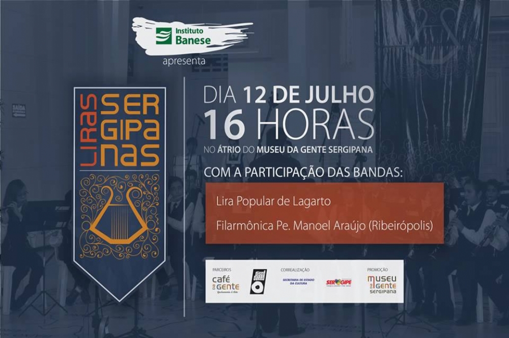 O projeto ‘Liras Sergipanas’ terá prosseguimento nesta sexta-feira, 12, no átrio do Museu da Gente Sergipana, a partir das 16 horas, com as apresentações da Lira Popular de Lagarto e da Filarmônica Padre José Manoel Araújo, de Ribeirópolis. O projeto vem sendo realizado pelo Instituto Banese, em parceria com a Secretaria de Estado da Cultura, e com o apoio do Café da Gente e do Selo Disco de Barro.