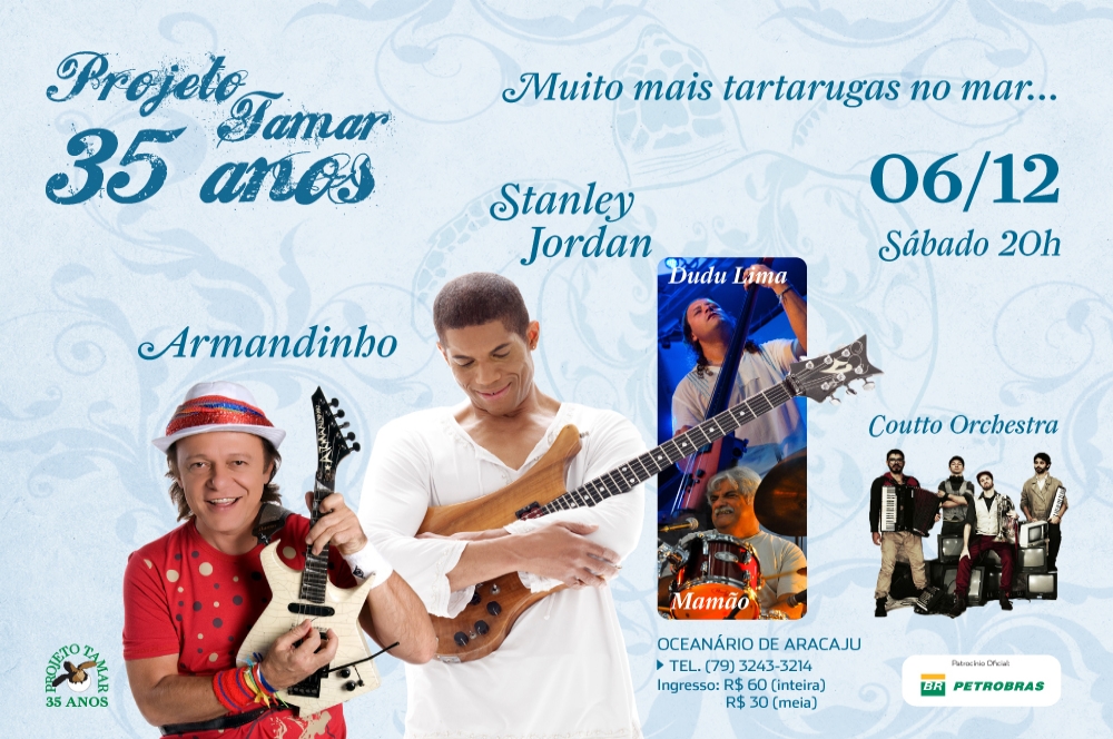 O Projeto Tamar vai celebrar seus 35 anos com apresentações imperdíveis do guitarrista norte-americano Stanley Jordan, no Oceanário de Aracaju no dia 6 de dezembro, a partir das 20h, Stanley Jordan, Armandinho Macêdo e Coutto Orchestra sobem ao Casco Acústico para mais uma noite de comemoração.