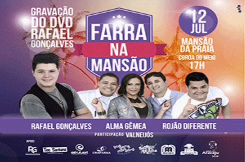 Com apenas um ano de carreira, o cantor de forró eletrônico Rafael Gonçalves vem conquistando reconhecimento do público sergipano. Para consagrar este primeiro ano, o músico estará realizando a gravação de seu DVD, intitulado ‘Farra na Mansão’, no dia 12 de julho, às 17h, na Mansão da Praia, bairro Coroa do Meio.