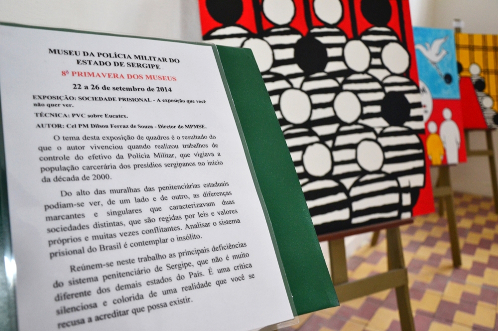 A partir desta quinta-feira, 25, até o próximo domingo, 28, será exibida no Museu da Polícia Militar do Estado de Sergipe, em São Cristóvão, a exposição ‘Sociedade Prisional’, de autoria do coronel da polícia militar Dilson Ferraz Souza. A mostra faz parte das atividades da 8ª Primavera dos Museus, evento realizado desde o dia 22 de setembro pelo Instituto Brasileiro de Museus (IBRAM) e promovido em Sergipe pela Secretaria de Estado da Cultura (Secult).